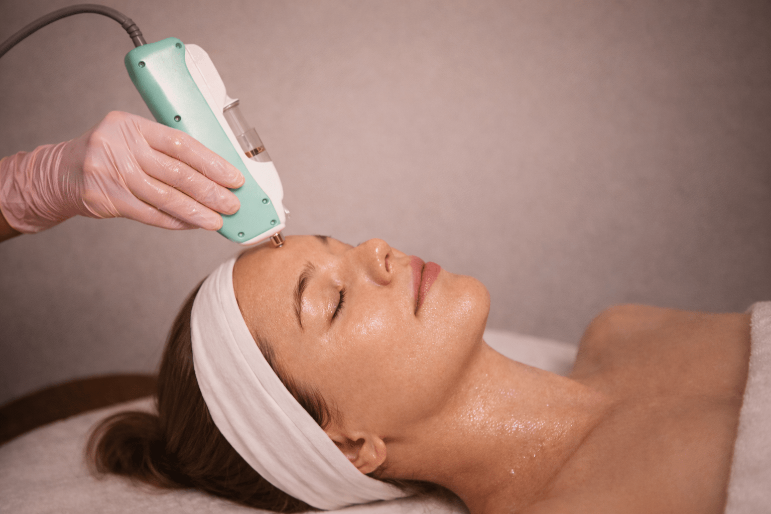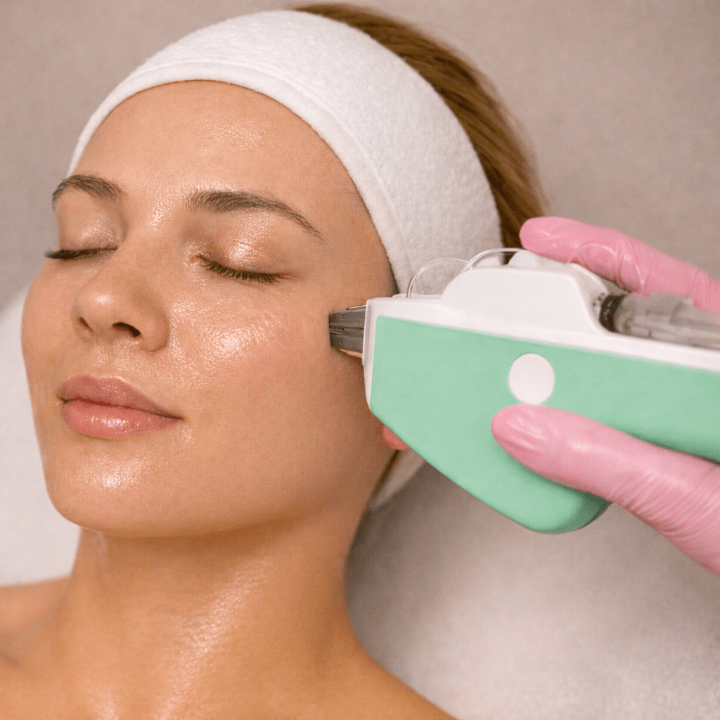 Ein innovatives, nadelfreies Mesotherapie-Gerät mit Elektroporation erhöht die Durchlässigkeit der Haut, sodass Wirkstoffe tiefer eindringen und die Haut intensiv hydratisiert, gestrafft und sichtbar revitalisiert wird.