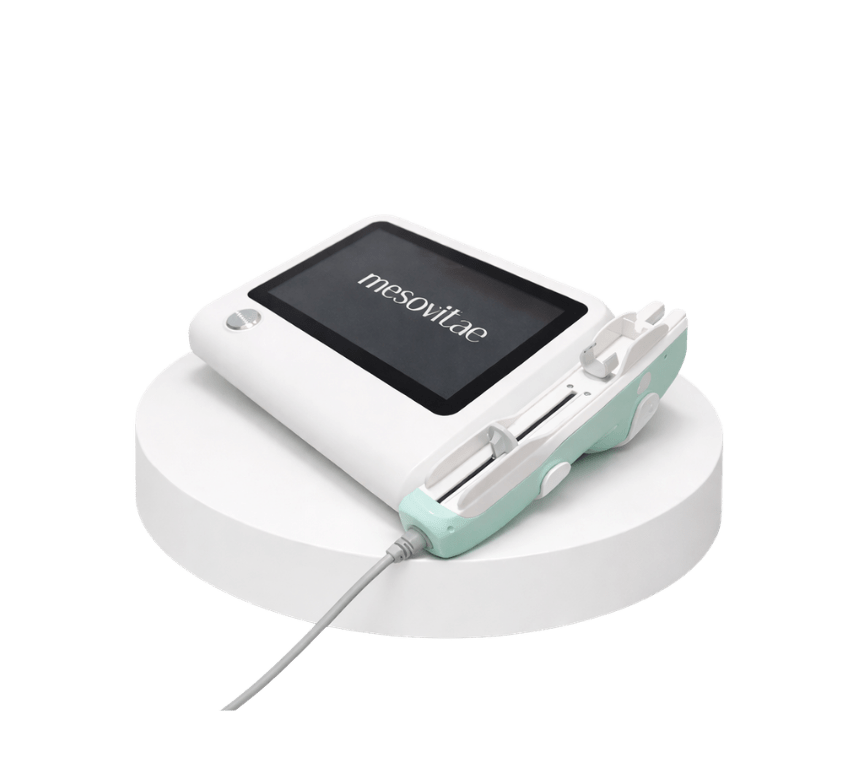 Das Mesovitae Gerät nutzt moderne Elektroporation, um hochwirksame Wirkstoffe schmerzfrei und nadelfrei tief in die Haut einzuschleusen und so die Hautregeneration sichtbar zu verbessern.
